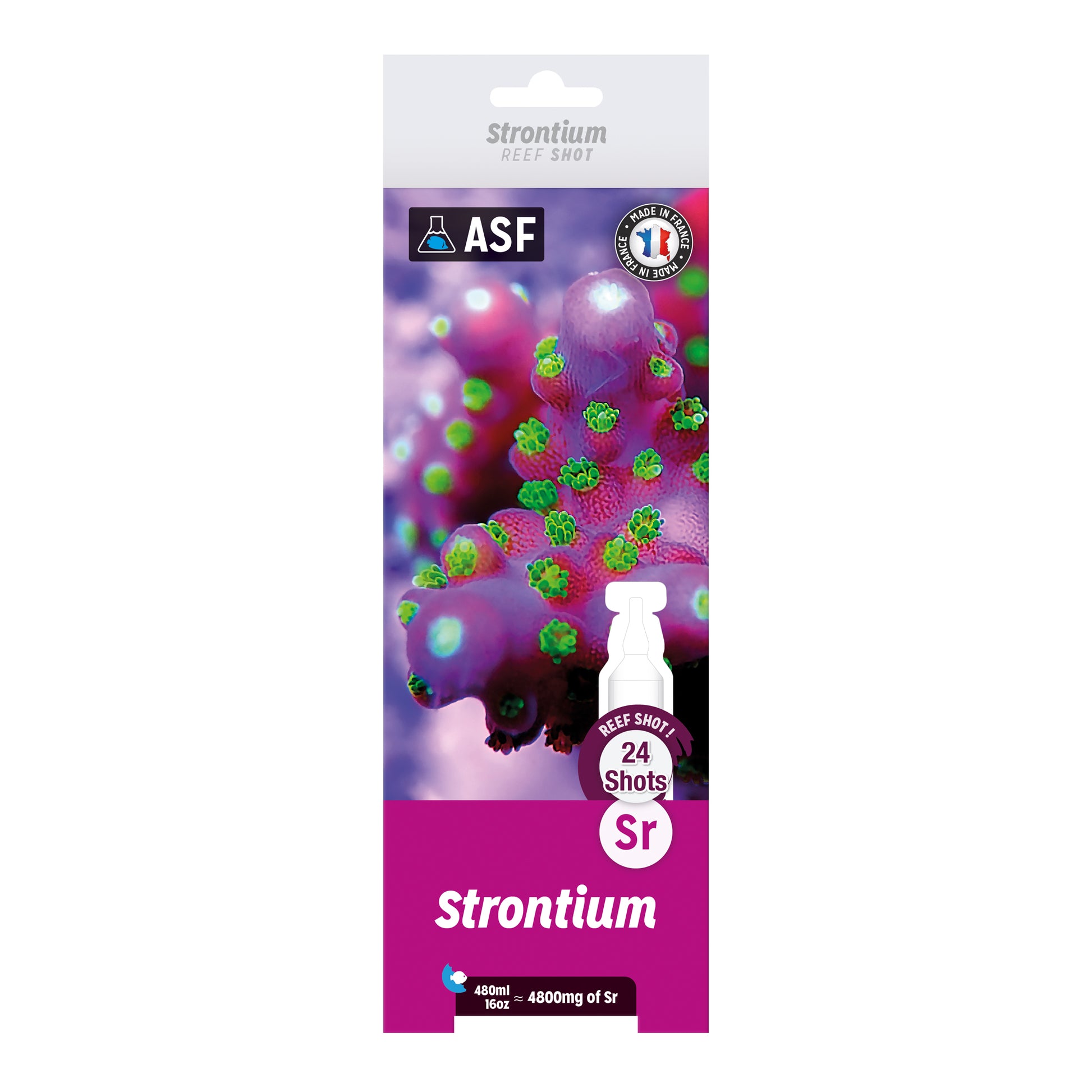 ASF Reef Shot Strontium is a ready-to-use, single-dose strontium supplement formulated to restore and maintain proper strontium levels in reef aquariums.